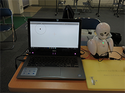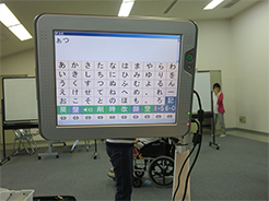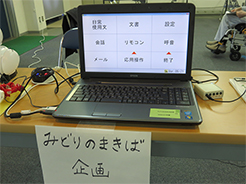「週に1回のペースで4回やって次に計測して、それがワンクールで次4クールの4回目があります。半年やって、やってよかったのかどうかは判りません。ちょこちょこ不便にはなっています。(症状が)進んだのかもしれないけれど、維持されたのかもしれない。でもいい方に考えて、維持されているのではないかと思います」その他、株式会社みどりのまきば企画によるコミュニケーション機器の展示がありました。 みどりのまきば企画の機器に関してはこちら (pdf) をご覧ください。