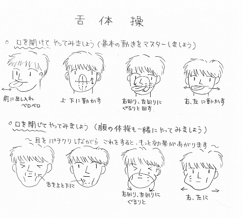 唇や舌の機能、嚥下の機能を保つために「嚥下体操」「舌体操」をやってみましょう。